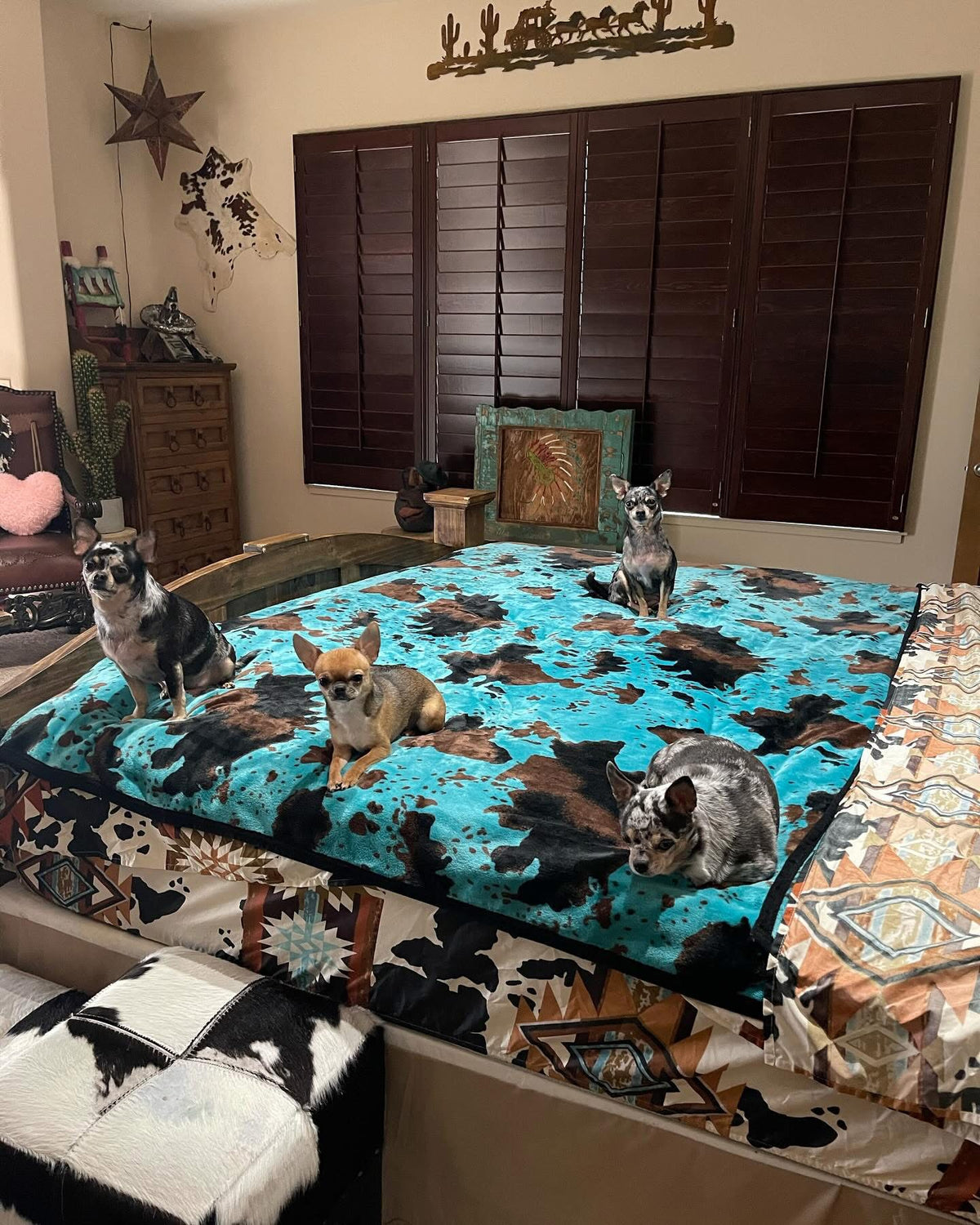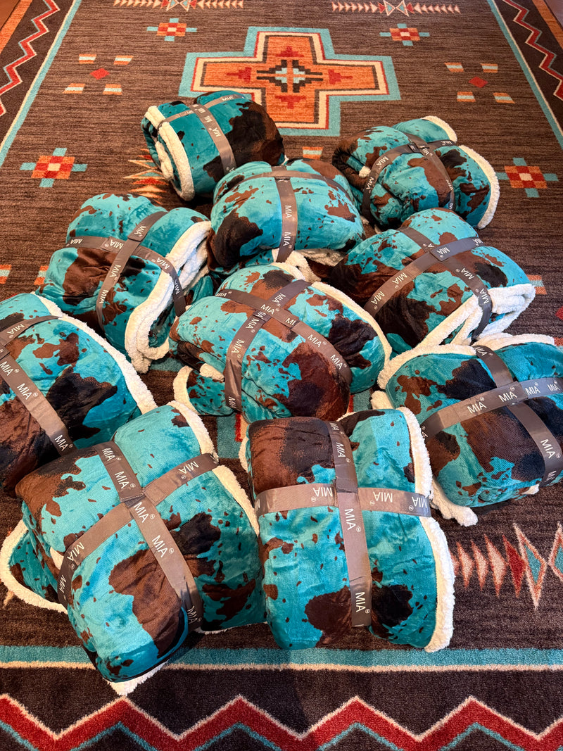 Sherpa plush Turquoise cow blanket
