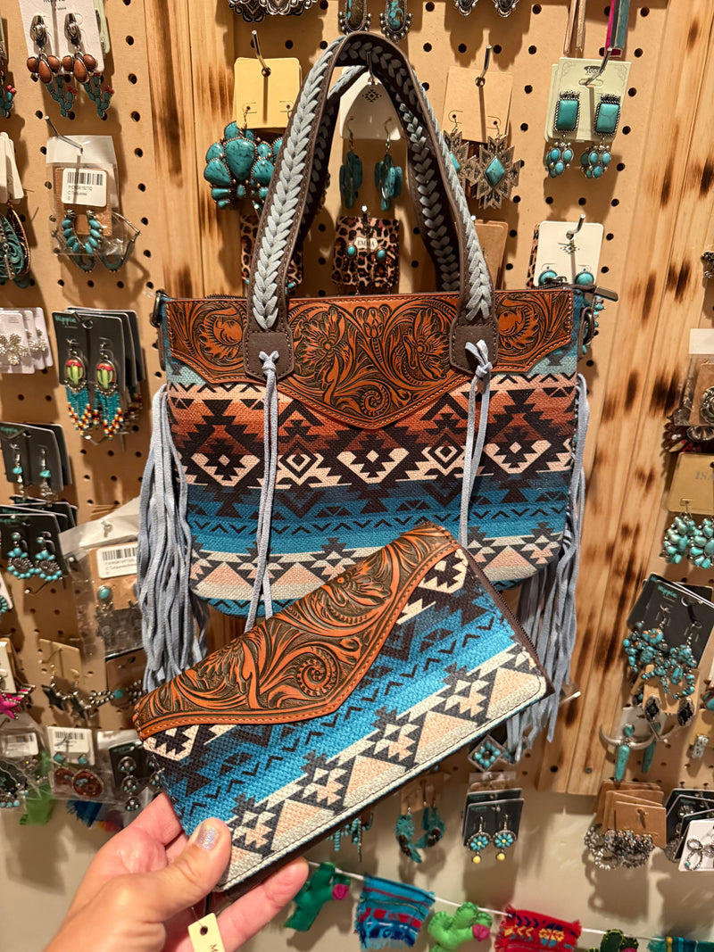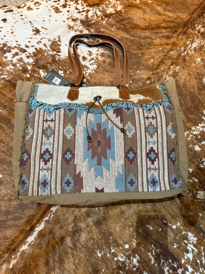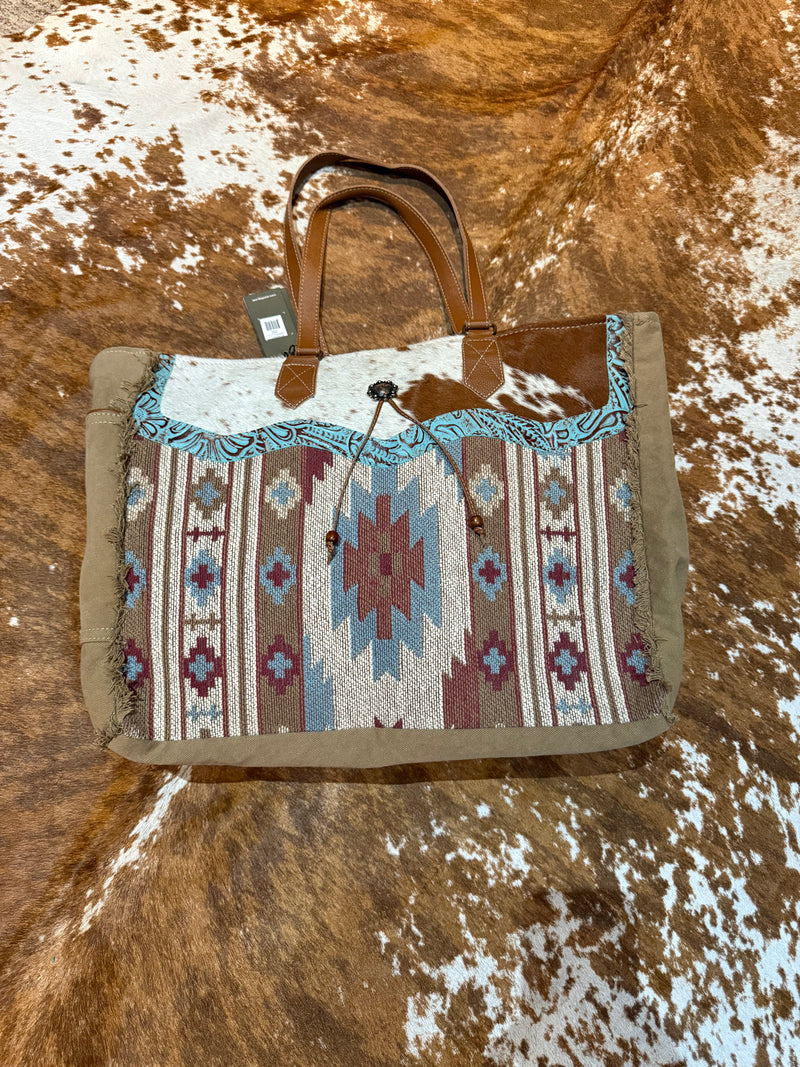 X Large Myra zip top cowhide aztec weekender Tote bag