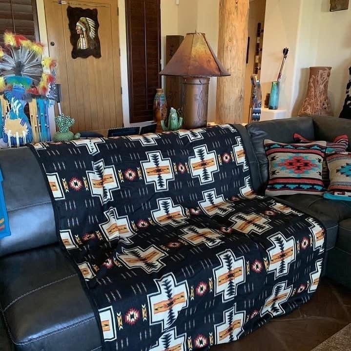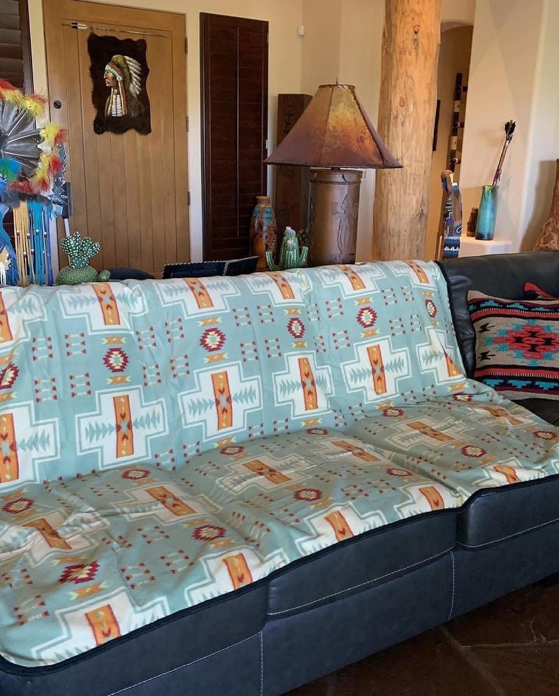 Full size Turquoise aztec velvet soft blanket