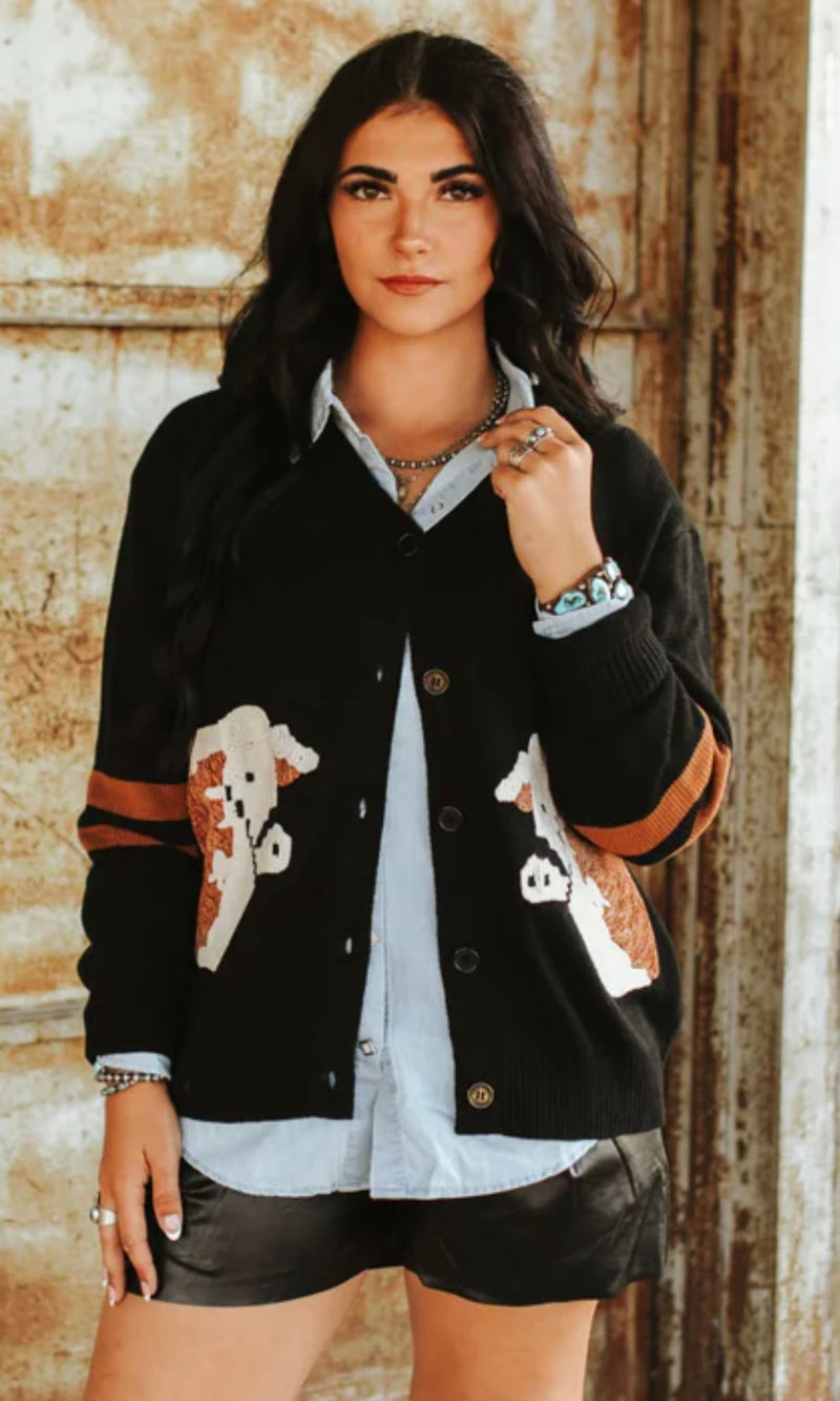 Cattle cardi blk HEREFORD KNIT SWEATER