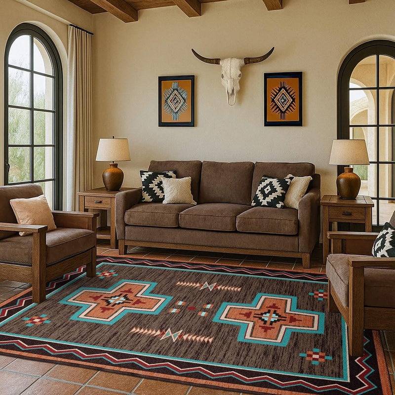 The Crusade brown & turquoise area RUG