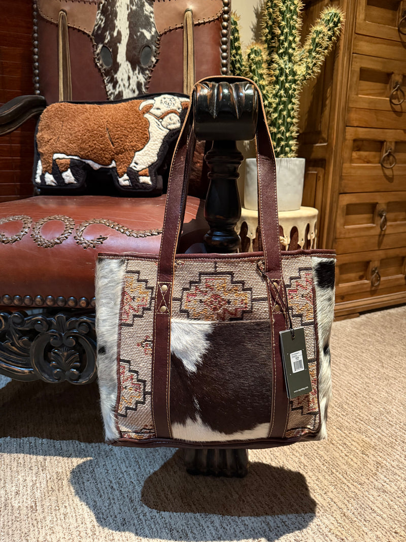 Large Myra zip top cowhide aztec Tote bag