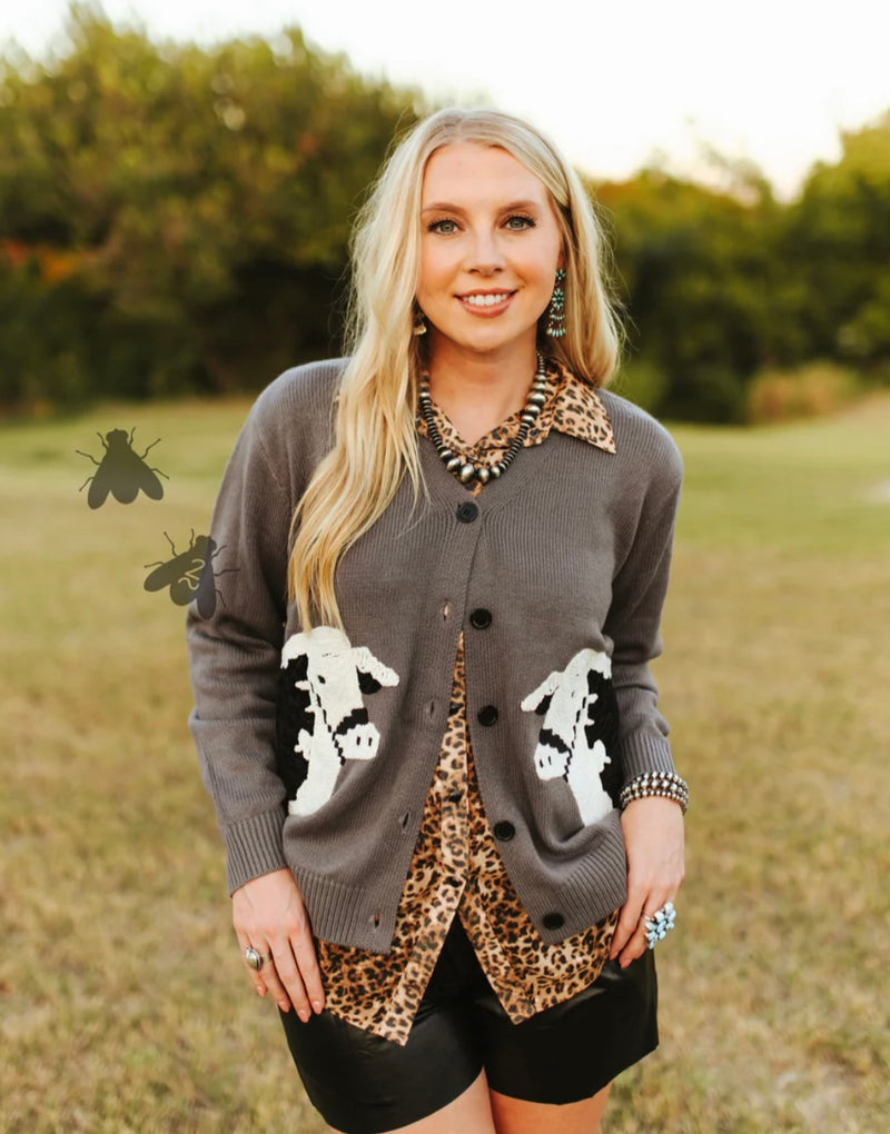 Cattle cardi blk HEREFORD KNIT SWEATER