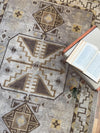 Rugs can be off in size no more than 3/4" due to shrinkage during the dying process.